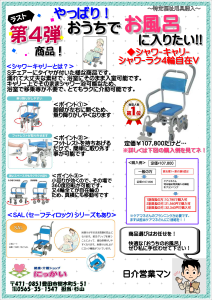 【告知】おうちでお風呂に入りたい!「シャワーキャリー」のご案内