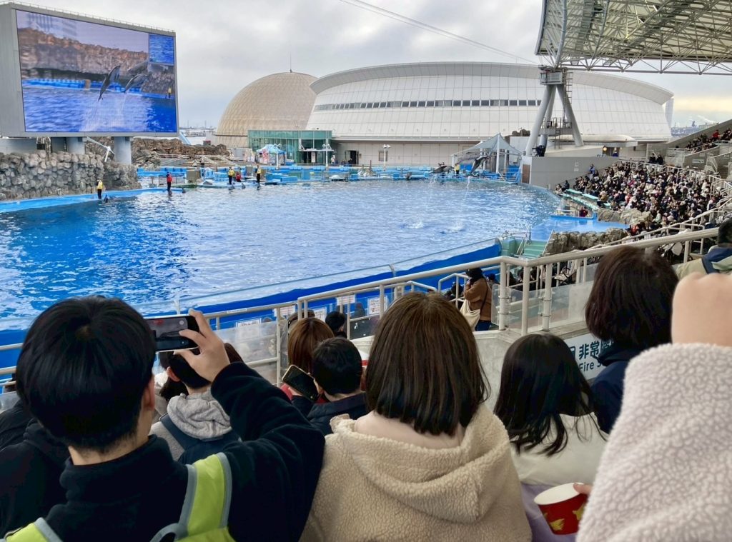 ダイナミックなイルカショー!みんなで声を合わせて応援しました。