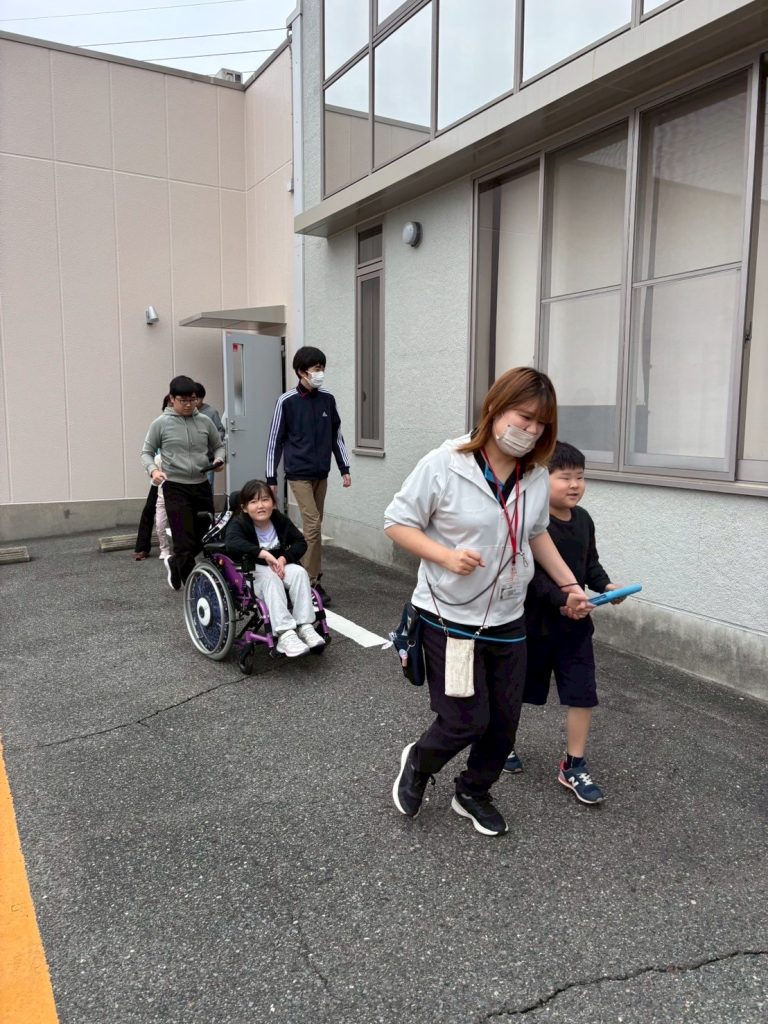 真剣な表情で取り組む!にっかい放デイの避難訓練の様子