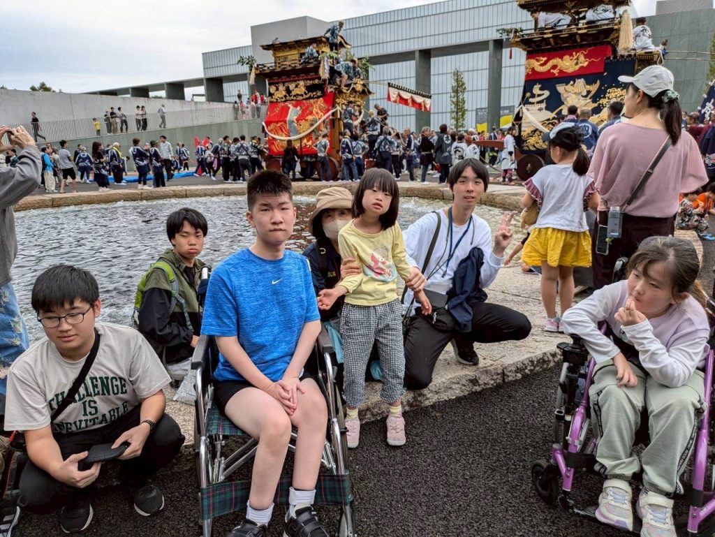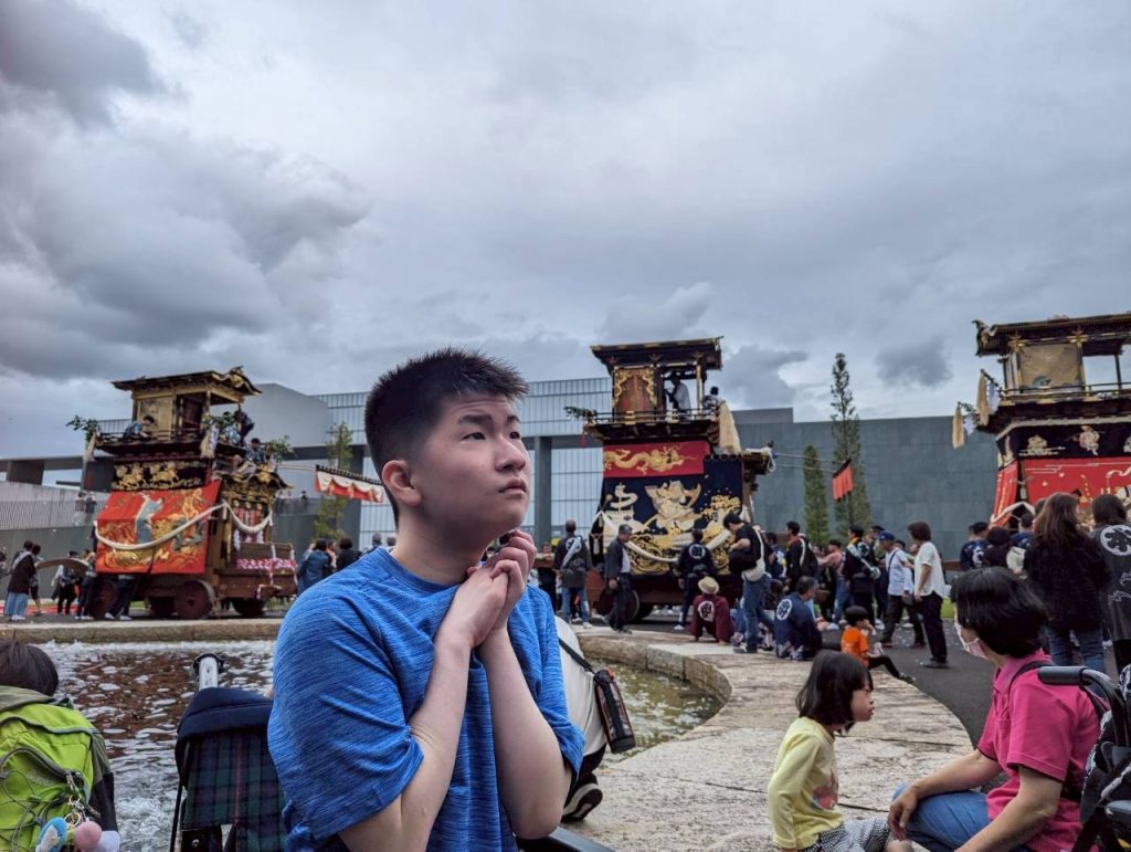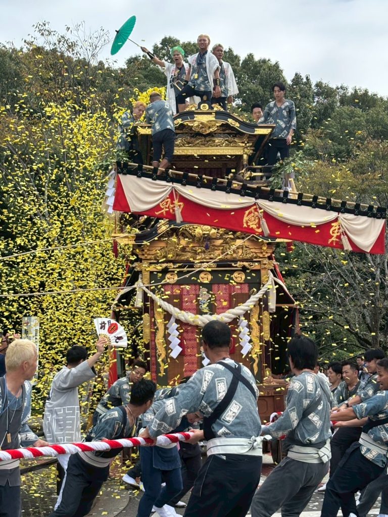 山車が動く迫力、舞い散る鮮やかな紙吹雪、そして美術館の前に3機並んだ山車の圧巻の光景に、目を輝かせていました。日本の伝統的な文化に触れ、思い出深い一日となりました!