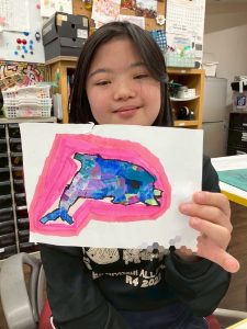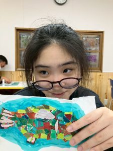 子供たちが一から色付けをし、ちぎり絵で完成させました。