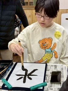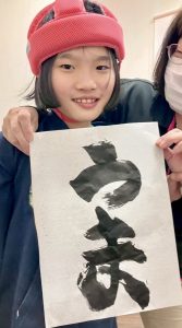 新しい年を迎え、みんなで「書初め」に挑戦しました! 子供たちは筆を持つと表情は真剣そのもの。
