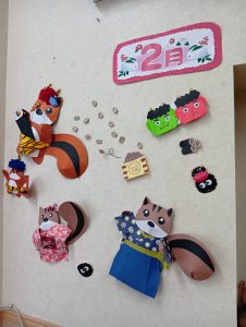 2月の壁面が完成しました!!2月と言えば節分ですね。
