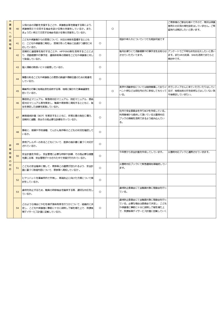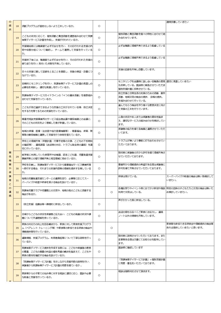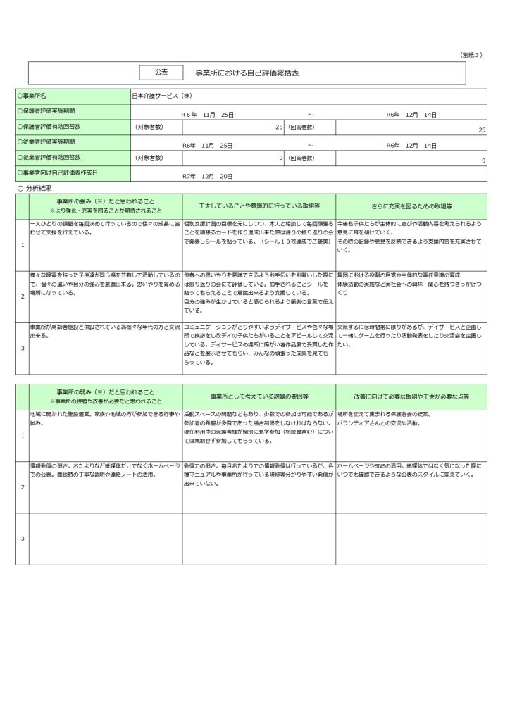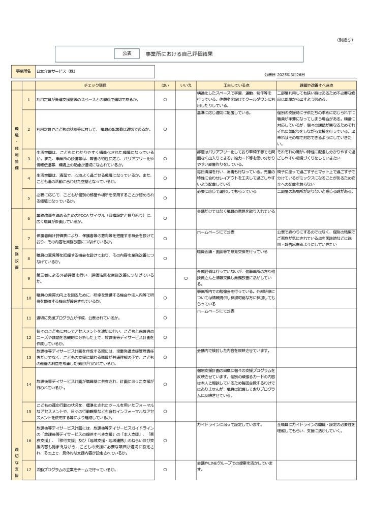 令和6年放課後等デイサービス評価・改善結果表を公開しました